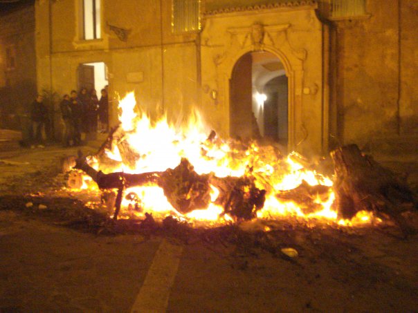 E’ tornato a Canna, con la magia di una volta, il fuoco di Sant’Antonio, nella piazza antistante la chiesa e con tanta gente proveniente anche dagli altricentri dell’Alto Jonio. Non appena sono arrivati, galoppanti, due cavalli ed un asino insieme con la sfilata delle maschere “brutte” , lunghe lingue di fuoco si sono elevate al cielo dal falò prontamente acceso nella piazza. Si sono elevati anche gli strilli festosi dei bambini, che, per tanti giorni, al grido “I linn’ di Santantonii’” si sono rincorsi per le viuzze del borgo, per raccogliere la legna da ardere in devozione del santo patrono degli animali. Puntuale, poi, il parroco del luogo donPierfrancesco Diego ha benedetto le biade, l’orzo, il grano, l’olio e la brace, ancora “ardente”, insieme con i biscotti d’una volta preparati dalle massaie nelle campagne.
