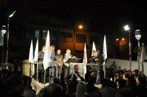 «Il centro destra a Cassano Jonio unito a sostegno della candidatura di Mimmo Lione». Presenti alla manifestazione di ieri sera (giovedì) (nelle foto), insieme a Mimmo Lione, candidato a sindaco e Gianluca Gallo, consigliere regionale, Giuseppe Scopelliti, presidente della regione Calabria, l’assessore regionale al Bilancio, Giacomo Mancini, i consiglieri regionali Gianluca Gallo, Giulio Serra, Gianpaolo Chiappetta, Fausto Orsomarso e la coordinatrice provinciale del Pdl cosentino, Simona Loizzo.