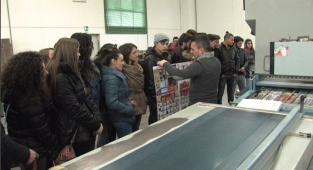 Il progetto ha previsto anche la visita degli studenti presso una importante realtà imprenditoriale del territorio, l’azienda grafica Agm. Qui i ragazzi hanno appreso, guidati dal responsabile aziendale Francesco Gallicchio, tutti i vari passaggi necessari per la realizzazione di un prodotto grafico.