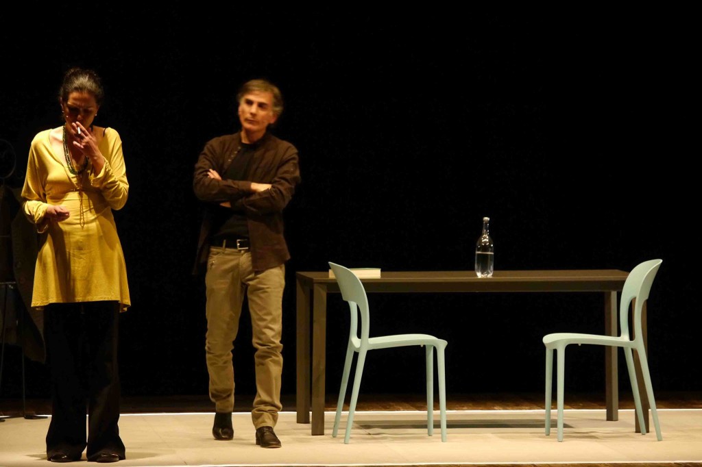 Il dialogo tra i due è un continuo crescendo di emozioni. L’uomo passa in un batter baleno da vittima a carnefice del rapporto. Offeso per non essere stato presentato come “fidanzato” dalla sua donna, diventa presto saccente, rimproverando alla sua lei tanti comportamenti per lui sbagliati, sino a sminuire la dignità della compagna. La Ruina, di origini calabro-lucane (i genitori si sono trasferiti da San Severino, Pz a Castrovillari, Cs) conosce bene il predominio dell’uomo nel rapporto con la donna in una cultura di un Sud che fu. L’attore ha saputo attualizzare questo fenomeno cospargendolo di fattori moderni, dove la gelosia morbosa giorno dopo giorno diventa dominante nei dialoghi della coppia, sino a non saper parlare quasi d’altro. Con l’uomo che scava nel passato della sua donna rinfacciandole amori giovanili e persino una violenza subìta, dandone a lei la colpa perché se l’è cercata. Anche questo se vogliamo è femminicidio. L’uccisione della dignità, dell’essere donna. L’uccisione del pensiero altrui, solo perché diverso. Domina questo uomo che giudica, che sembra consigliare ma obbliga.