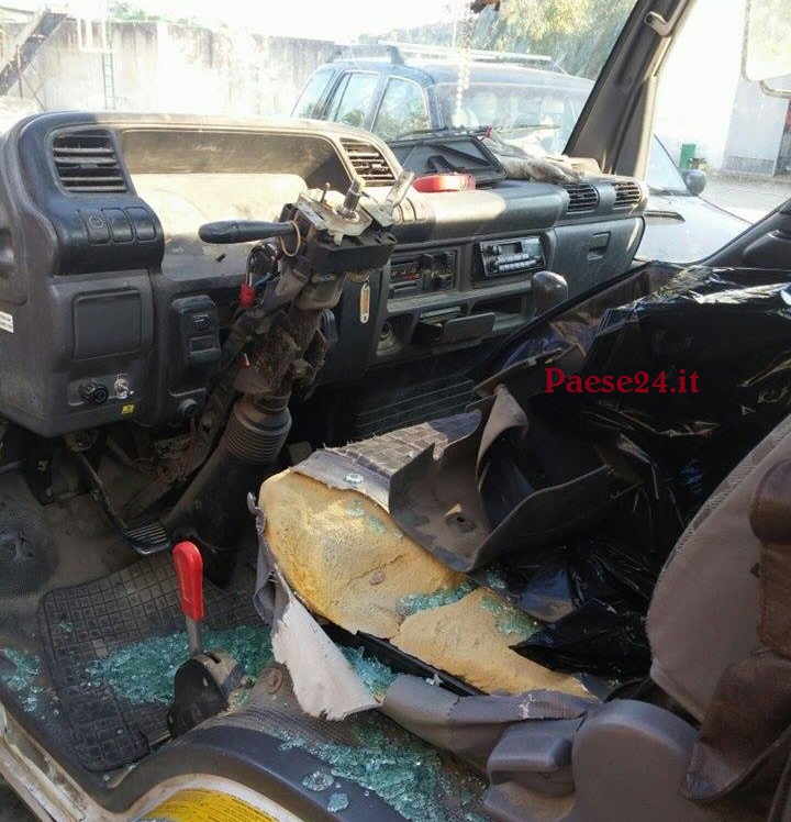 Nell’area erano parcheggiati anche due mezzi del Comune utilizzati nella raccolta dei rifiuti, e sui quali i malviventi si sono accaniti, apparentemente senza motivo, danneggiandoli seriamente (nella foto in alto) e svuotandoli anche del carburante. Probabilmente uno dei due mezzi è stato utilizzato per estrarre dal terreno i cavi di rame. A dare l’allarme, questa mattina (mercoledì), gli operai del Comune giunti sul posto per ritirare i mezzi. Il sindaco Antonello Ciminelli ha sporto regolare denuncia ai Carabinieri e si è immediatamente attivato per installare un sistema di videosorveglianza per l’area dove sorge il depuratore (nei pressi dell’isola ecologia che dovrebbe entrare in funzione a breve), e che sarà attivato – assicura il sindaco – nel giro di pochissimi giorni.