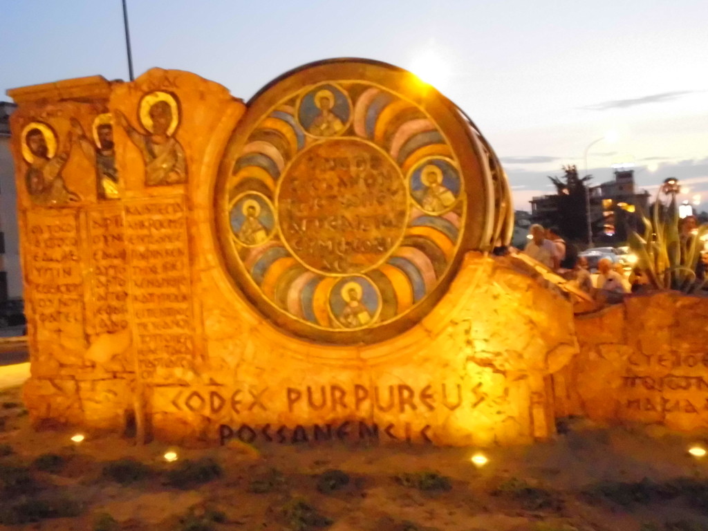 Significativa cerimonia di inaugurazione, nella serata di venerdì 24 luglio, della Macchina Armonica, realizzata dall’artista rossanese Pino Savoia, collocata sulla nuova rotonda di Contrada Amarelli sulla S.S. 106 nel comune di Rossano. La Macchina Armonica, ispirata all’Evangelario rossanese (candidato al Memory of the World dell’Unesco), è stata realizzata in terracotta Galestro armata su telaio in acciaio che abbraccia un cilindro metallico, collocato al centro della struttura, in alluminio e ferro antico. Le pareti, oltre venti metri quadrati, interamente modellate e scolpite, dipinte con colori smaltati a freddo e resine acriliche. Per la realizzazione, inoltre, sono state utilizzate preziosissime foglie d’oro fuse e applicate. Insomma, un’opera unica, del peso di oltre 50 quintali, per il cui concepimento sono serviti più di venti mesi di lavoro, meticoloso e certosino, che hanno portato alla luce, grazie all’estro ed al talento dell’artista Pino Savoia. La Macchina Armonica, in realtà, così come il Codex, che nella sua essenza continua a raccontare la vita, l’insegnamento e l’esempio di un uomo straordinario come Gesù Cristo, è un monumento vivente che, grazie alla genialità del suo creatore, tende ad amplificare i valori dell’identità del territorio. La Macchina Armonica, dunque, rappresenta il vero biglietto da visita della città bizantina a quanti, quotidianamente, viaggiano lungo la S.S. 106. Alla cerimonia d’inaugurazione hanno preso parte, oltre a diversi assessori e consiglieri comunali, S.E. Mons. Giuseppe Satriano, Arcivescovo di Rossano-Cariati, il sindaco di Rossano, Giuseppe Antoniotti, Walter Pulignano, (Amministratore unico di Ecoross Srl), azienda sponsor dell’opera, l’artista Pino Savoia e diverse autorità civili, militari e religiose. Tanti i complimenti, dopo la benedizione da parte dell’Arcivescovo Satriano, all’artista Pino Savoia per aver realizzato un’opera straordinaria.