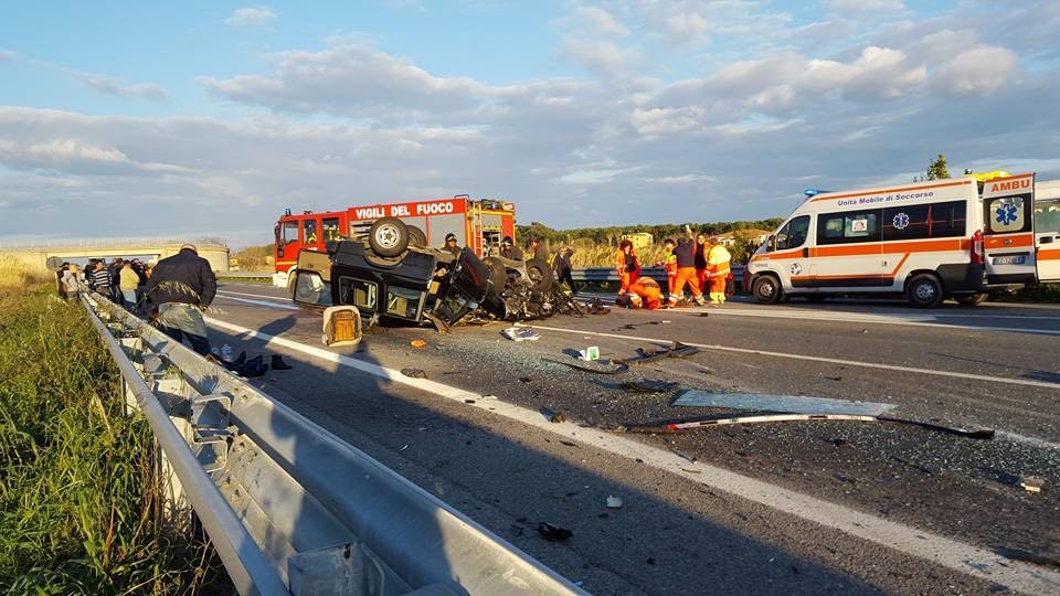 Incidente frontale questo pomeriggio (domenica) attorno alle 16, sulla SS 106, al km 377, nei pressi dell’uscita per Villapiana Lido. Una Land Rover vecchio tipo si è scontrata, per cause in corso di accertamento, con una Mercedes classe A, per poi ribaltarsi. Sei persone rimaste ferite, di cui tre in gravi condizioni: quelle all’interno della vecchia Land Rover, una famiglia con padre, madre e figlia. Il padre sembrerebbe avere avuto la peggio e si trova all’ospedale di Cosenza.