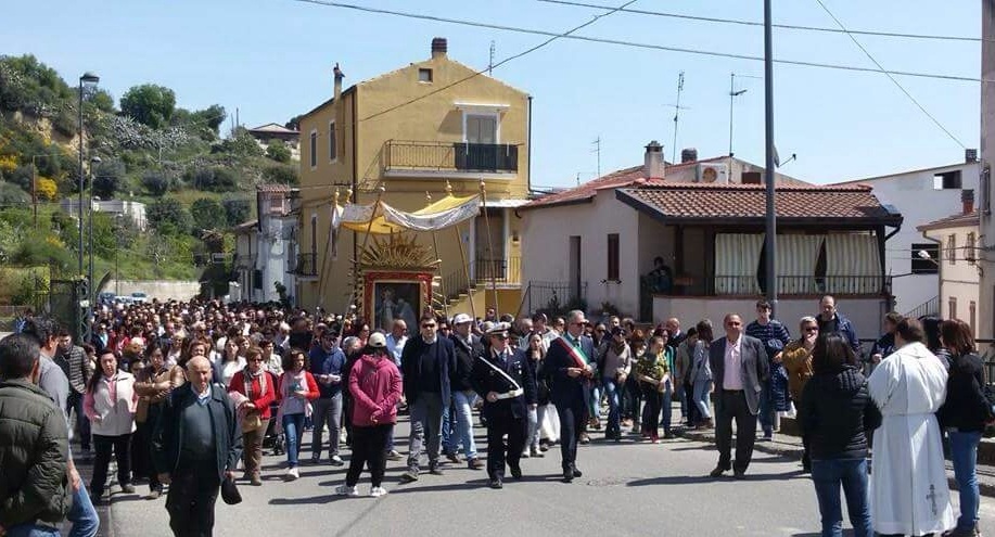 Santuario “Madonna della Nova” di Rocca Imperiale, dove la fede incontra la tradizione: scelto quest’anno come Santuario Diocesano in occasione dell’Anno Giubilare della Misericordia. Come ogni anno il primo sabato dopo Pasqua, a far data dal 1644, anno in cui la Sacra Icona salvò l’antico borgo agricolo da una massiccia invasione turchesca, si è ripetuta la solenne festa dedicata a Santa Maria della Nova il cui Santuario sorge nel bel mezzo della zona agricola delle Cesine un tempo interamente ricoperta da vigneti e oggi completamente riconvertita alla produzione del rinomato limone di Rocca. La festa, legata alla grande fede e devozione popolare della popolazione rocchese, è caratterizzata un pellegrinaggio del popolo fedele che, di buon mattino, parte a piedi dalla Chiesa Madre nel centro storico e, pregando e intonando canti religiosi, raggiunge il Santuario della Madonna, in aperta campagna, dove li attende la Sacra Icona della Madonna Santa Maria della Nova. Da qui, dopo l’incontro con la loro Protettrice e la Santa Messa solenne officiata dal parroco don Vincenzo Santalucia, sempre in processione, la Sacra Icona viene accompagnata nella Chiesa Madre dove la Madonna resterà sino al 2 luglio allorquando si ripeterà, in maniera ancora più solenne, la seconda festa della Madonna della Nova.