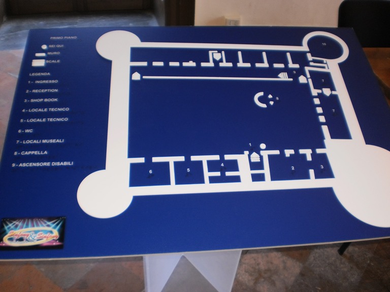Le mappe tattili riproducono schematicamente la realtà dei luoghi in esse rappresentati, non sono una semplice copia in rilievo di una normale pianta ma una rielaborazione semplificata dei luoghi in essa riportati. Ciò per consentire un semplice e rapido riconoscimento degli stessi e rendere possibile la comprensione attraverso il senso del tatto.