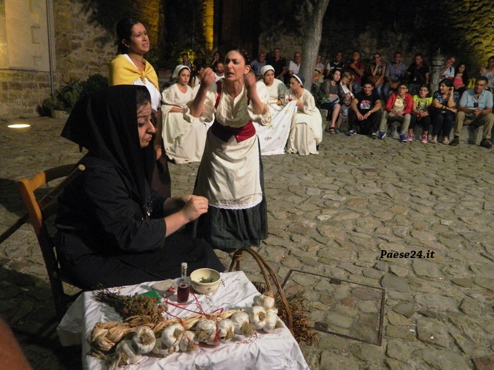 Storie che ormai appartengono alla tradizione antropologica, raccontate in maniera ironica e divertente; un percorso teatralizzato scritto, ideato e diretto da Giuseppe Ranoia. Scene riprodotte da piccoli e grandi attori che rendono protagonisti anche il pubblico, tra le stradine del borgo dove sono allestite le postazioni che consentono di ammirare la bellezza suggestiva di un paese, ai più sconosciuto, che riesce a ridere delle cattive dicerie. E dopo circa un’ora e mezza immersi in antichi miti e leggende, tra applausi e risate, i visitatori possono degustare i prodotti tipici della Lucania, assaporandoli nella sagra gastronomica preparata per l’occasione.