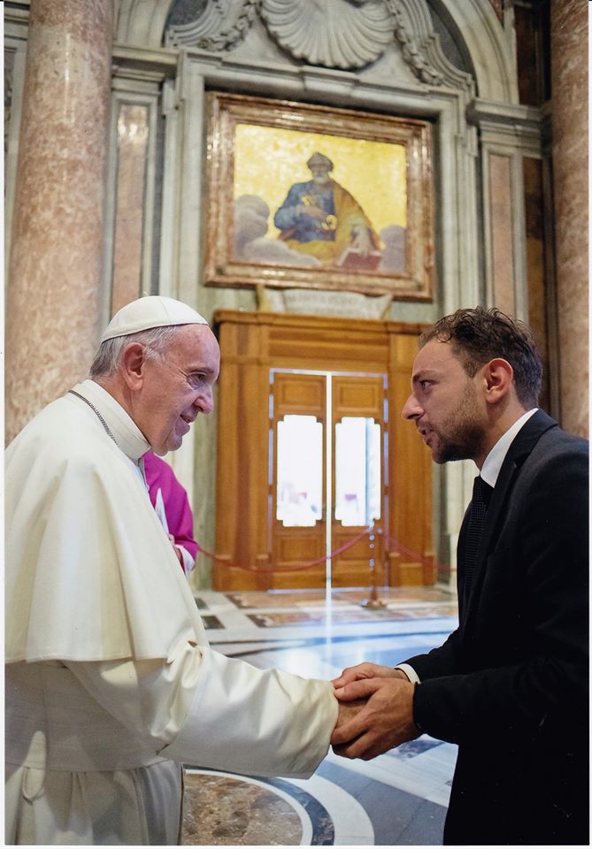 aaaProprio la causa di canonizzazione di don Alfonso Maria Fusco, che si dedicò all’istruzione dei bambini poveri, è stata seguita da Paolo Vilotta, 34 anni, postulatore di Amendolara Marina che ormai vive a Roma, spostandosi in varie parti del Mondo, sopratutto in Sud America, in Brasile, per seguire le cause di postulazione. Per il dottor Vilotta (nella foto a sinistra con il Papa) quella di domenica è stata la prima causa da postulatore per una canonizzazione, dopo averne già seguite per la beatificazione. A Roma lo hanno raggiunto la mamma Ornella e la sorella Iris. Mentre davanti lo schermo, gli sono stati spiritualmente vicini, il papà don Nicola, sacerdote (papas) di Castroregio (rito greco-ortodosso) e il fratello maggiore Gennaro.