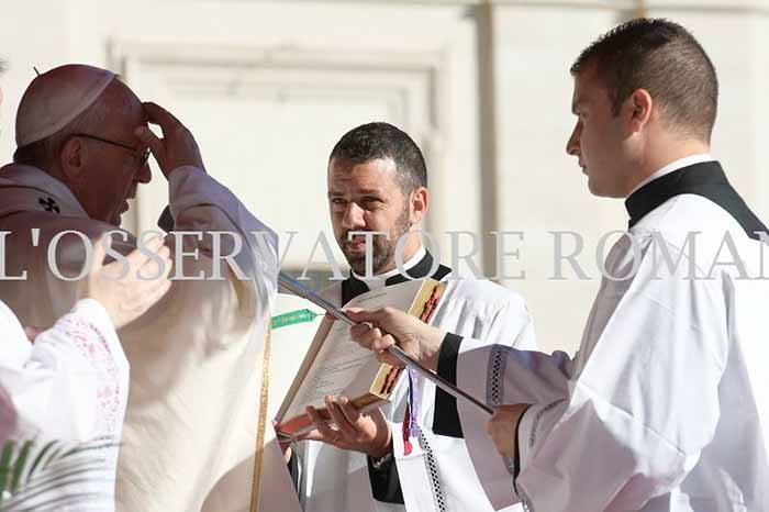 Una domenica da ricordare anche per un altro cittadino di Amendolara, anche lui residente alla Marina, Luca Pitrelli. Il giovane seminarista, 31 anni, ha fatto da ministrante a Papa Francesco durante la Santa Messa, tenendo il messale (nella foto in basso). I due giovani amendolaresi hanno avuto occasione a margine della Santa Messa di incontrare personalmente il Santo Padre.