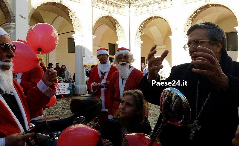 Clima di festa, questa mattina (venerdì) – tra palloncini rossi, Babbi Natale e Vespe d’epoca – nei chiostri del Protoconvento Francescano, per la seconda edizione di “Natale sotto le strenne”, appuntamento con i mercatini natalizi (aperti anche oggi pomeriggio fino alle 21.30) organizzati dalle scuole della città in collaborazione con l’Amministrazione comunale. Palline colorate, tazze, vari oggetti fatti a mano, candele, calze natalizie, tutto con il solo obiettivo della solidarietà: il ricavato sarà, infatti, devoluto alla comunità di Amatrice, colpita dal terremoto.