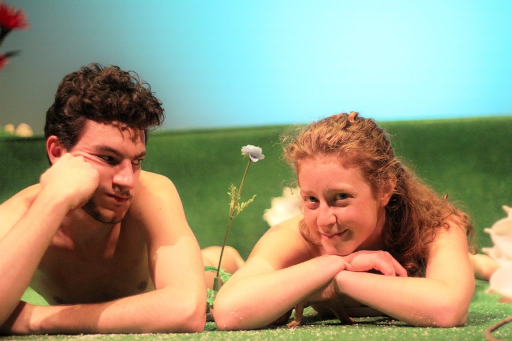 In scena due giovanissimi attori: Elisabetta Raimondi Lucchetti e Davide Fasano nei panni dei primi abitanti del pianeta. Con leggerezza e ironia, la pièce avvia una riflessione sulla differenza e l’identità di genere: la guerra dei sessi è antica quanto l’umanità. Ed è quello che scopre Mark Twain traducendo il manoscritto originale – come lui stesso scrive con il suo consueto senso dell’umorismo – dei diari di Adamo ed Eva. Partendo da questa “storica” traduzione, lo spettacolo racconta le inquietudini ed il modo di pensare dei primi esseri umani, che cercheranno di intendersi nonostante le loro evidenti diversità. Una storia di costole, serpenti e mele qui si trasforma in una dissertazione sulle relazioni tra uomo e donna usando le armi dello humor e del nonsense. Avremo accesso ai pensieri segreti del primo uomo e della prima donna, constatando con allegria che le relazioni tra i due sessi non sono poi così cambiate da quando Dio ha creato il nostro mondo. Scopriremo infatti che questa coppia dell’Eden non è molto diversa da qualsiasi altra coppia di oggi, che essa viva a New York, Parigi o Castrovillari.