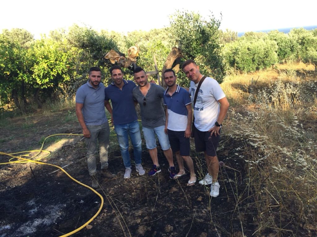 Un incendio minaccia un’abitazione privata della periferia sud-ovest del paese: il fuoco, sviluppatosi all’improvviso intorno alle ore 17 di venerdì 8 giugno in Contrada Russo, e precisamente in via Sandro Pertini, viene a fatica ridotto alla ragione per l’intervento tempestivo e provvidenziale di un Vigile del Fuoco fuori servizio intervenuto tempestivamente sul posto. Si tratta di Claudio Pili (il quarto nella foto da sinistra), giovane Vigile del Fuoco che presta servizio da alcuni anni presso il Distaccamento dei Vigili del Fuoco Volontari di Trebisacce il quale, allertato dagli abitanti della zona, è subito corso sul posto e, sprezzante del pericolo e capitalizzando la già lunga esperienza maturata sul campo, assieme ad alcuni giovani cittadini (Vincenzo Odoguardi, Francesco e Stefano Blaiotta) e ai componenti della famiglia minacciata dal fuoco, prima dell’arrivo dei soccorsi si sono adoperati con le mani nude e con l’utilizzo di tubi volanti e di altri mezzi strumentali, a spegnere il principio d’incendio che, alimentato dal forte vento di ponente, stava prendendo corpo e minacciava di propagarsi alla casa della famiglia.