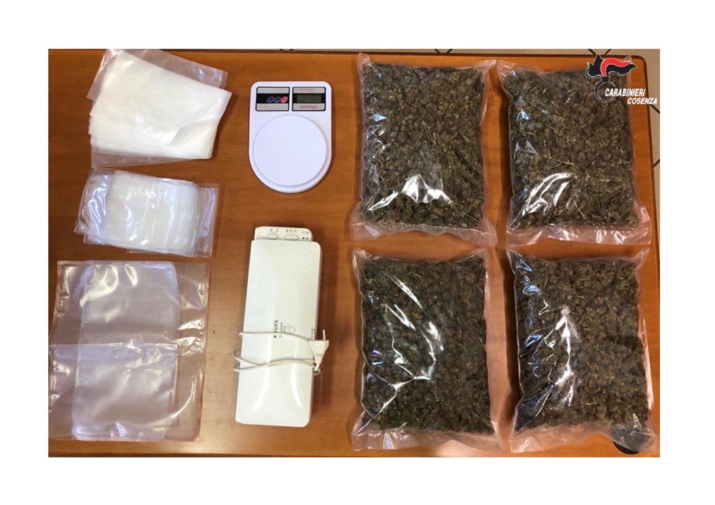 La minuziosa perquisizione veicolare si concludeva in maniera positiva: nascosti sotto il materiale da lavoro e l’attrezzatura venivano trovati quattro sacchi termosigilati contenenti ciascuno 500 grammi di sostanza stupefacente, per un totale di 2 kg di marijuana, così come acclarato con i reagenti chimici una volta che la stessa veniva portata in caserma e sottoposta ai routinari test. La perquisizione veniva estesa all’abitazione dello stesso, dove venivano rinvenuti una grossa bilancia di precisione, una macchina per il sottovuoto e degli altri involucri per confezionare lo stupefacente della stessa tipologia di quelli appena sequestrati. La droga, così come tutto il materiale rinvenuto, venivano sottoposti a sequestro penale, mentre l’uomo veniva dichiarato in stato di arresto per detenzione di ingenti quantitativi di sostanza stupefacente e d’intesa con la Procura della Repubblica di Castrovillari veniva tradotto, in regime degli arresti domiciliari, presso la sua abitazione in attesa di essere giudicato con rito direttissimo. Nella giornata di ieri si è svolto il giudizio presso il Tribunale di Castrovillari, in cui il G.I.P. ha convalidato l’arresto e confermato nei confronti dell’uomo la misura cautelare agli arresti domiciliari.