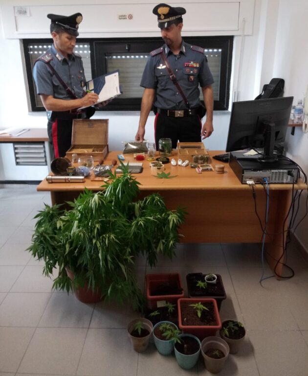 Precisamente nella prima casa i militari, grazie anche al fiuto del pastore tedesco “Collins” rinvenivano 60 grammi circa di “erba” già divisa in dosi, materiale per il confezionamento ed il taglio, oltre che a cinque piantine di canapa indiana. Nella seconda abitazione, invece, i Carabinieri scoprivano una quantità ancora maggiore di marijuana: quasi 140 grammi, di cui una parte divisa in dosi, mentre la restante contenuta in sacchetti di plastica, nonché un bilancino di precisione e materiale per il confezionamento.