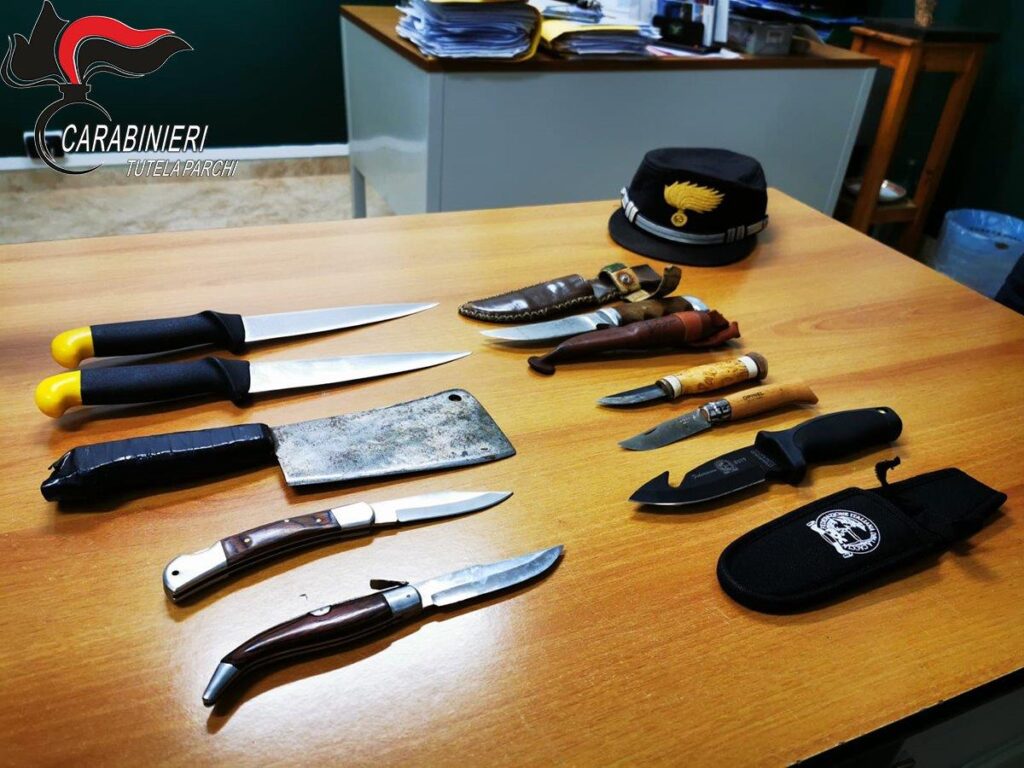Trasportavano oggetti atti ad offendere senza le dovute autorizzazioni. Per tale motivo i militari della Stazione Carabinieri Parco di Viggianello hanno denunciato alla Procura della Repubblica di Lagonegro due persone. La denuncia è avvenuta a seguito di un controllo in località Fagosa-Serrapollo, del Comune di Castelluccio Inferiore (PZ), località ricadente nel Parco Nazionale del Pollino, al fine di prevenire e reprimere eventuali atti di bracconaggio. Durante tale controllo è stato fermato un autocarro con a bordo i due uomini, uno di Rocca Imperiale (CS) ed un altro di San Gennaro Vesuviano (NA), con all’interno diversi borsoni e otto cani da caccia. Dopo aver constatato che i cani erano regolarmente detenuti si è proceduto alla perquisizione del veicolo.