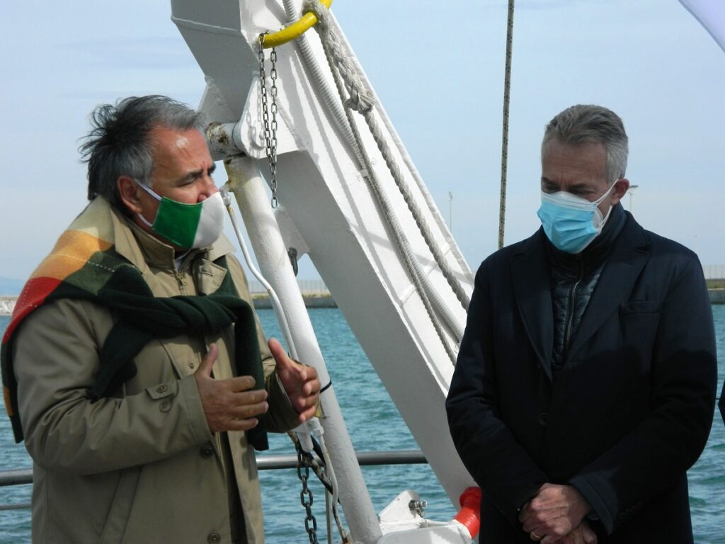 La conferenza stampa si è tenuta a bordo dell’imbarcazione, precisamente a prua, dopo che, nel rispetto del distanziamento, il comandante dell’Astrea, Giuseppe Coppola, da buon padrone di casa, ha descritto ai presenti le caratteristiche dell’imbarcazione e le apparecchiature a bordo, tra le quali l’ecoscandaglio multi-beam che consentirà (come ci ha spiegato il primo tecnologo della Stazione Zoologica “Anton Dohrn”, Simone Pietro Canese) attraverso un sistema subacqueo robotizzato ROV, di visionare i fondali della Secca e mappare così la flora e la fauna: veri tesori che potranno essere così mostrati al mondo intero.