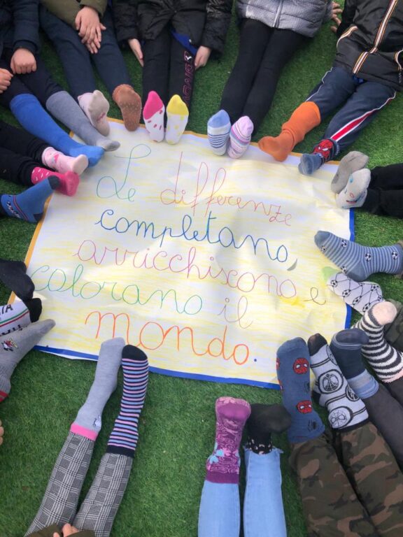 L’opportunità di lanciare un messaggio di solidarietà e inclusione, attraverso un’azione semplice, ma ricca di significati. È questo l’obiettivo della “Giornata dei calzini spaiati”, celebrata il primo venerdì di febbraio e ormai diventata anche un fenomeno social. Dai più piccoli ai più grandi, con i calzini di diverso colore, forma e lunghezza. Proprio questi indumenti sono diventati metafora della diversità perchè, anche se spaiati, rimarranno sempre e comunque dei calzini. Tra gli Istituti che hanno aderito all’iniziativa, nata una decina di anni fa dall’idea di una scuola elementare di Terzo di Aquileia (provincia di Udine), anche il Comprensivo Mandatoriccio, guidata dalla dirigente scolastica, Mirella Pacifico. Chiaro il messaggio: «Tutti siamo uguali, seppur diversi, e ognuno di noi è unico e speciale». In occasione della manifestazione di sensibilizzazione, tutti gli alunni, ma anche i docenti, hanno indossato simbolicamente calzini spaiati e ne hanno appeso tanti, allegramente colorati, all’ingresso di ogni plesso dell’istituto.
