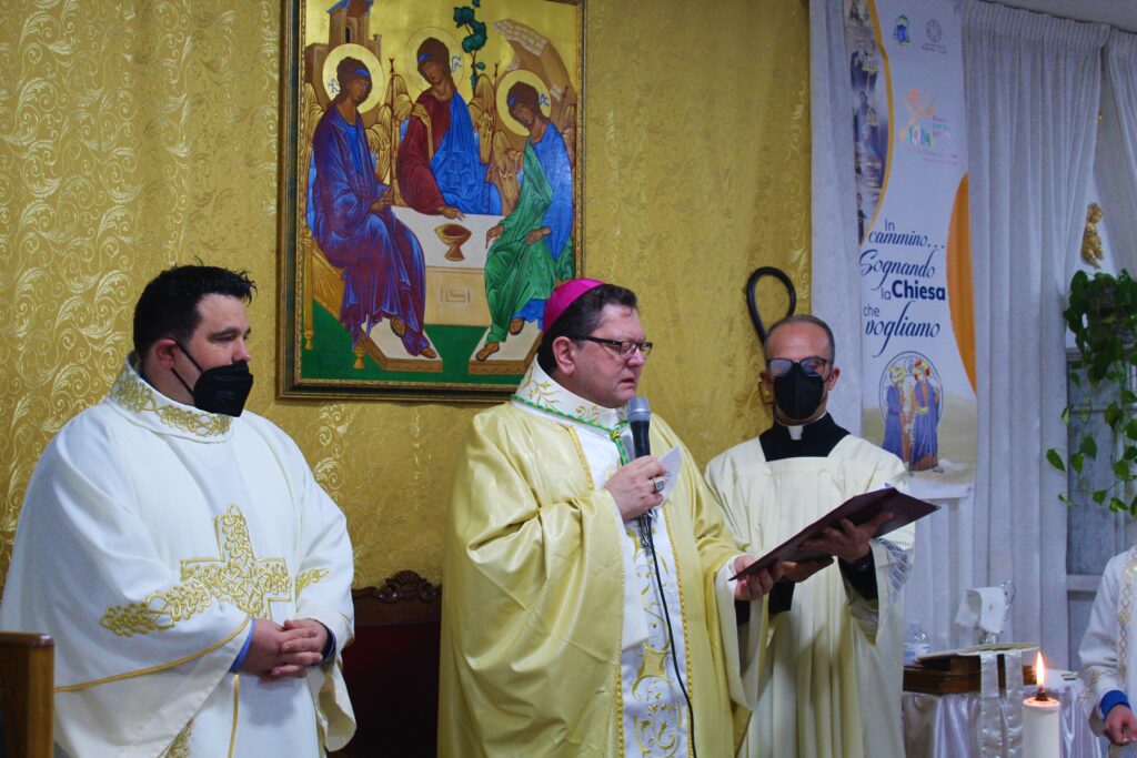 Il padre Arcivescovo, nel corso della sua omelia in cui si è soffermato sulla pagina del Vangelo della Domenica, ha voluto ringraziare don Pino Straface per aver svolto il ruolo di amministratore della Parrocchia per circa quattro anni ed ha voluto augurare buon cammino a don Enzo Malizia per il nuovo incarico. Anche don Enzo Malizia ha voluto ringraziare il padre Arcivescovo per la nomina e don Pino Straface per il passaggio di consegne alla guida della Parrocchia della “Santissima Trinità”. Molto significativo, tra l’altro, il messaggio di benvenuto da parte del Comitato parrocchiale, con lettura di Annamaria Scarnati, a don Enzo Malizia. Lo stesso Comitato ha voluto omaggiare il nuovo parroco con una stola ed un abito talare. La Santa Messa è stata allietata dai canti liturgici eseguiti dal Coro parrocchiale diretto dal Maestro Agostino Brunetti. Al termine della celebrazione eucaristica, dopo la benedizione finale da parte del padre Arcivescovo, i tanti fedeli si sono avvicinati a don Enzo Malizia per gli auguri di rito in merito al suo nuovo incarico alla guida della Parrocchia della “Santissima Trinità” che si trova nell’edificio dell’ex Comunità Montana “Sila Greca” in Via Buozzi allo Scalo di Rossano.