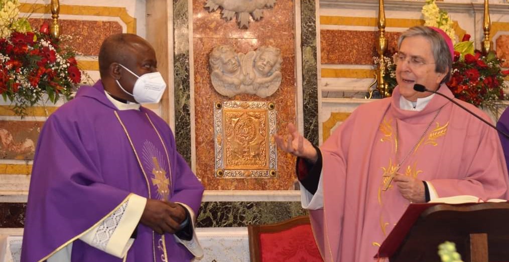 Il vescovo della Diocesi di Cassano allo Ionio, don Francesco Savino, ha benedetto i venticinque anni di sacerdozio di Padre Godè Roger Ntabala, parroco Parrocchia San Michele Arcangelo di Albidona (entrambi nella foto). Mons. Savino, dinanzi ai confratelli e consorelle, al sindaco Leonardo Aurelio e a diversi parrocchiani, tra cui molti giovani, ha celebrato con gioia e riconoscenza verso il Signore per il dono sella vocazione, il primo quarto di secolo del sacerdote.