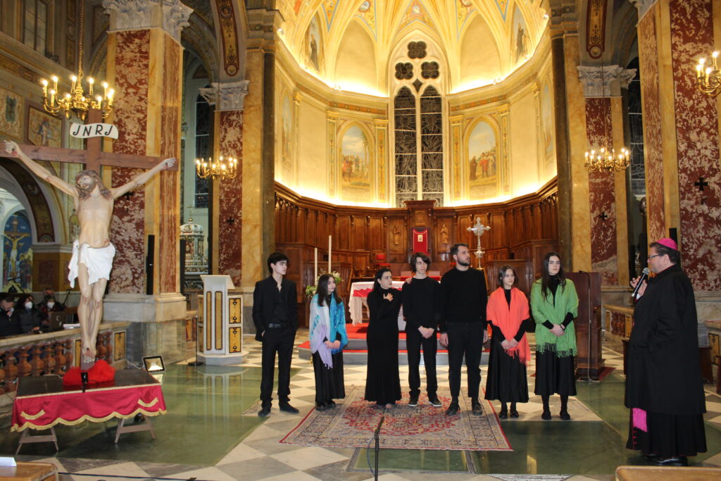 Apprezzata l’interpretazione di Maria Rosaria Bianco e degli allievi (Luciana Federico, Gabriel Berlingieri Seres, Giuseppe Pallone, Silvia Falvo, Simona Beraldo e Andrea Foti) della “Maros in Teatro” da parte del pubblico seduto nei banchi della Cattedrale intitolata a Maria SS.ma Achiropita. Anche il padre Arcivescovo, S.E. Mons. Maurizio Aloise, ha voluto complimentarsi sia con Maria Rosaria Bianco e sia con i suoi allievi per la rappresentazione. La stessa Maria Rosaria Bianco, poi, ha voluto ringraziare il padre Arcivescovo e don Pino Straface (vicario generale della diocesi di Rossano-Cariati) per la loro presenza, don Pietro Madeo (parroco della Cattedrale), i suoi allievi, il tecnico audio-luci Benito Toscano e quanti hanno preso parte all’evento.