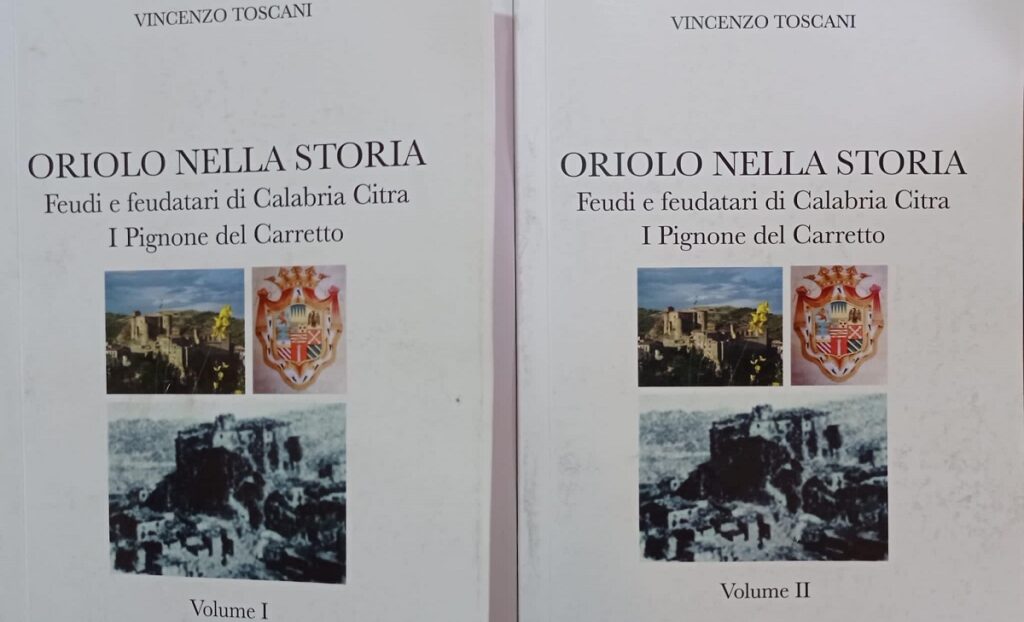 di Vincenzo Diego – “Oriolo nella Storia. Feudi e feudatari di Calabria Citra. I Pignone del Carretto”, per i tipi di Valentina Porfidio Editore. Questo è il titolo dell’importante e poderosa opera del professore Vincenzo Toscani. Due volumi in grado di accendere ulteriore luce sui fatti, che hanno segnato la storia del Meridione e dell’intero Paese. Volumi che senza dubbio saranno punto di riferimento per gli studiosi, gli accademici, i tanti ricercatori di storia patria, per gli studenti ed appassionati di quel passato, che continua a caratterizzare il nostro presente e che ci accompagnerà per il resto dei nostri giorni. L’Autore nasce a Oriolo, in provincia di Cosenza, una laurea in Fisica, ordinario di matematica e fisica nelle superiori, ma con la passione per la storia. Una figura poliedrica, divisa tra storia e scienza che lo hanno accompagnato di pari passo. Ha fondato una stazione di monitoraggio idrometeorologico, oggi facente parte del Centro Funzionale Multirischi della Regione Calabria. Fondò anche una delle più importanti stazioni sismiche d’Italia, inserita nella rete dell’Istituto Nazionale di Geofisica e Vulcanologia. La stazione, la prima ad entrare in funzione in Calabria, ha fornito dati indispensabili per localizzare l’epicentro del terremoto dell’Irpinia del 23 novembre 1980. Nel 1981 era presente nel “rapporto del Gruppo di Studio sulle esplosioni sotterranee” presso la Conferenza del Disarmo di Ginevra. Sindaco della sua Comunità e più volte assessore. Un punto di riferimento per tante generazioni di studenti, un mecenate che ha contribuito a far scoprire le radici di una comunità per secoli senza memoria, caduta in un vago “girone” senza tracce. Lo ha fatto attraverso pubblicazioni, libri, ricerche, ma anche recuperando monumenti e beni di valore storico e opere d’arte di inestimabile valore, come l’altare ligneo barocco con tabernacolo madreperlato del 1798, statue del Settecento, reliquie, lapidi tombali e commemorative dei Pignone del Carretto. Sono beni materiali e immateriali, che hanno arricchito il patrimonio socio-culturale della comunità di Oriolo, ma non solo, poiché beni dell’intera umanità. Quasi novecento pagine da leggere con rispetto, con amore ed attenzione, perché parlano dei nostri avi, svelano un passato che ci appartiene a partire dal periodo magno-greco. L’autore lo fa attraverso i Pignone del Carretto, a cominciare dall’anno Mille, con documenti di prima mano, frutto di ricerca e un manoscritto donatogli a Terni nel lontano 1989 da uno dei discendenti di questa illustre e potente famiglia, don Domenico Musso di Peralta, che Toscani chiama confidenzialmente “don Mimì”, poi epistolari e documenti di diversi archivi statali e privati. Parte da lontano l’Autore, dagli antichi insediamenti di Sibari, Metaponto, i Lucani; parla degli antichi popoli che abitarono queste terre, culla della civiltà occidentale. Poi il periodo federiciano con Ruggero De Amicis, uno dei padri della nostra lingua, e la Scuola poetica Siciliana. Pagina dopo pagina, sino ad incontrare i Gattinara (Fulvia Lignana Gattinara, marchesa di Oriolo, nipote del gran cancelliere di Carlo V Mercurino Gattinara, era cugina di quarto grado con Caterina dei Medici regina di Francia), i Colonna, gli Orsini, i Brancaccio, famiglie che nel bene e nel male hanno segnato secoli di storia italiana ed europea. Poi il periodo normanno di Roberto il Guiscardo padre della contessa Mabilia “signora di Oriolo”, ricco di avvenimenti e di interesse per i nostri luoghi, ma non solo; e poi i conventi, le abbazie, le donazioni, gli assedi al castello normanno, e ancora i Sanseverino, i Della Marra, i Vergara, sino a Marcello Pignone. Marcello, uno degli otto presidenti togati della Regia Camera della Sommaria di Carlo V, fu il primo dei Pignone a possedere queste antiche terre, “sagace ed avveduto ministro”, come sottolinea l’Autore. Una scrittura sobria, scorrevole, accattivante, capace di farti dialogare con i nobili del tempo, con le donne e gli uomini del popolo, partecipare alla vita e agli intrighi di palazzo, alle lotte di conquista, ai principali avvenimenti che segnarono uomini e cose.
