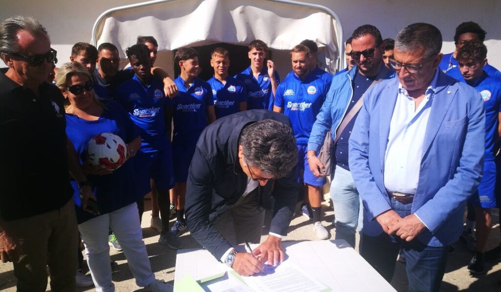 Ha avuto luogo presso lo Stadio Comunale “Pietro Toscano” la consegna formale dei lavori, all’impresa appaltatrice Gipe S.r.l. con sede legale a Corigliano-Rossano per l’importo di € 71.000,34 più € 1.000,00 per oneri di sicurezza non soggetto a ribasso per un totale di € 72.000,34 oltre iva, perla spesa complessiva dei lavori di € 87.870,41 che troverà copertura con fondi di Bilancio Comunale – Bilancio 2022/2024 annualità 2022, riguardanti il “Rifacimento in erba naturale del Campo da calcio “Pietro Toscano”. All’atteso momento, «che segnerà una svolta decisiva per il rilancio della struttura sportiva», sono intervenuti il sindaco Gianni Papasso, il legale rappresentante dell’impresa appaltatrice Gipe, tecnici e funzionari dell’ente, gli assessori al Comune di Cassano, Mungo, Sposato e Falbo, il consigliere Gaudiano, il presidente del Cassano Sybaris Calcio, Mario Varca accompagnato da altri dirigenti e dallo staff tecnico, l’allenatore Burgo e gli atleti della compagine azzurra. Dopo i sentiti ringraziamenti del Presidente Varca, indirizzati al primo cittadino e all’Amministrazione Comunale per l’impegno assunto e mantenuto, il sindaco Papasso, ha tenuto a evidenziare le realizzazioni già eseguite e le altre in corso d’opera per assicurare a tutte le realtà urbane e rurali presenti nel vasto perimetro comunale, strutture sportive sicure e attrattive a disposizione di quanti vogliono praticare sport come strumento essenziale per il miglioramento dello stile di vita, nonché come elemento fondamentale per la formazione dei ragazzi nella varie discipline sportive. Per quanto riguarda lo Stadio Comunale “Pietro Toscano”, ubicato in contrada Ponte Nuovo, utilizzato essenzialmente per attività agonistica dilettantistica di calcio a 11, il rettangolo di gioco, finora in terra battuta, con l’intervento previsto, ha aggiunto il primo cittadino, finanziato con fondi del bilancio comunale, finalmente sarà dotato di manto erboso che contribuirà a riqualificare l’area di gioco adeguandola agli standard previsti per tutte le categorie della Lega Nazionale Dilettanti. Il nuovo rettangolo di gioco dello Stadio Comunale “Pietro Toscano” avrà dimensioni regolamentari pari a 103 m x 62 m. Nel frattempo, ha riferito il sindaco, si sta lavorando alla progettazione definitiva per partecipare a un nuovo bando per ulteriori interventi sugli impianti sportivi. I lavori della messa in opera del manto erboso sul rettangolo di gioco del “Pietro Toscano”, secondo quanto stabilito nel capitolato d’appalto, dovranno essere realizzati in trenta giorni dalla data di consegna.