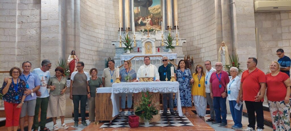 «Il pellegrinaggio in Terra Santa- si legge nella nota- ha rappresentato per noi un vero punto di svolta, uno spartiacque nel nostro modo di essere e di sentirci cristiani. Il viaggio, per le condizioni in cui abbiamo maturato e definito la scelta di parteciparvi, rappresenta un vero e proprio evento, che porta con sé il segno della volontà del Signore di condurci a aderire a questa chiamata, ad accogliere questo dono prezioso. Abbiamo iniziato il nostro cammino e ciò che si è dischiuso davanti ai nostri occhi, ai nostri sensi, al nostro cuore, crediamo di non potere o sapere rendere, fino in fondo, con le nostre parole. Un cammino ascensionale, un crescendo di sensazioni tangibili, di segni concreti che richiedevano di essere letti alla luce di una fede, la nostra, seppure imperfetta e incompiuta. Eravamo in una Terra così geograficamente distante dalla nostra ma che, cristianamente e spiritualmente, ci apparteneva. Camminavamo su quelle strade, toccavamo quei sassi, respiravamo quell’aria, ci bagnavamo in quelle acque e osservavamo quei luoghi santi, che trasmettevano, in ogni loro più remoto e piccolo elemento, un significato sacro e profondo. il “Verbo”, Via, Verità e Vita, che ha cambiato la storia e che continua a farla! Nazareth, Cana, il Monte Tabor, il Lago di Tiberiade, Magdala, Gerico, Betlemme, Gerusalemme, Emmaus, questa la mappa dei luoghi all’interno dei quali altri spazi, di grande bellezza e spiritualità, si offrivano alla nostra meditazione, facendo da sfondo alla preghiera comunitaria e personale. La storia di Gesù dipanata con estremo realismo, contestualizzata nei luoghi che avevamo immaginato attraverso la lettura delle Sacre Scritture e che ora potevamo “leggere”, essendoci! La storia di Maria, nella sua umile casa di Nazareth, là dove riceve l’annuncio e dove pronuncia parole semplici, sublimate nel suo “Eccomi”! L’umile dimora che si trasforma, accostandosi con fede, soprattutto nei momenti di adorazione del Santissimo Sacramento, al suono di canti e musiche armoniose, in un luminoso e prezioso scrigno, che tocca le corde dell’anima, riempie il cuore e fa piangere di gioia. La storia di Gesù- prosegue l’esposizione- abitata da noi al Monte Carmelo e alla Grotta di Elia. Il Mare di Galilea, nel luogo dove Gesù inizia il suo itinerario di evangelizzazione, scegliendo coloro che sarebbero divenuti i suoi Apostoli, gli annunciatori della Buona Novella. Sulle sponde del Lago di Tiberiade, ci è sembrato di visualizzarli, di ascoltarne le voci, di seguire i loro passi per entrare nelle loro storie. La celebrazione nella Chiesa di Cana, alla vigilia del nostro 35° anniversario di nozze, diventa un’esperienza che è dono: rinnoviamo, accompagnati dal nostro Arcivescovo, insieme alle altre coppie del gruppo, la promessa matrimoniale. Esperienza carica di emozione che sperimentiamo visitando Qasr el Yahud, sulle rive del Fiume Giordano, luogo dove Gesù riceve il battesimo dalle mani di Giovanni il Battista. Qui rinnoviamo il rito del battesimo, mentre stride e sgomenta la presenza di soldati armati da una parte e dall’altra di questa striscia di acqua, zona di confine per la storia umana, ma, per noi cristiani, meravigliosa oasi di pace, uno dei luoghi più sacri, fonte di pura bellezza, elemento naturale di ispirazione, espressa nelle forme più alte dell’arte. Cammino ascensionale, che sale al Monte delle Beatitudini, giunge alla Basilica della Natività, attraversa Ain Karem, la Casa di Santa Elisabetta, dove Maria rivolge al cielo il suo “Magnificat”!