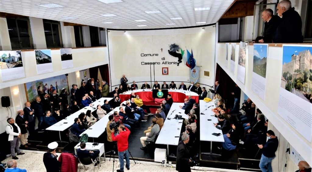 Rappresentanti delle istituzioni nazionali, regionali, provinciali e locali, nonché del mondo dell’associazionismo, della chiesa, della scuola e delle forze dell’ordine hanno partecipato, nel salone di rappresentanza “Gino Bloise” del Palazzo di Città di Cassano All’Ionio, ai lavori del Consiglio Comunale “aperto” per dibattere sulla situazione dell’ordine pubblico, dopo l’attentato intimidatorio consumato ai danni dell’assessore ai lavori pubblici dell’ente sibarita, Leonardo Sposato, al quale nei giorni scorsi, nottetempo era stata data alle fiamme, in adiacenza della propria abitazione, l’automobile. Dopo una breve introduzione del presidente Notaristefano, cui ha fatto seguito la relazione tenuta dal vice sindaco Antonino Mungo, in cui ha riportato i fatti che hanno determinato la convocazione dell’assise, unanimi, sono stati, nel corso dei vari interventi che si sono succeduti, gli attestati di vicinanza e di solidarietà sia al destinatario dell’evento criminoso, che al sindaco Gianni Papasso, all’amministrazione comunale e all’intera comunità cassanese offesa e vilipesa, ancora una volta, da episodi criminosi.
