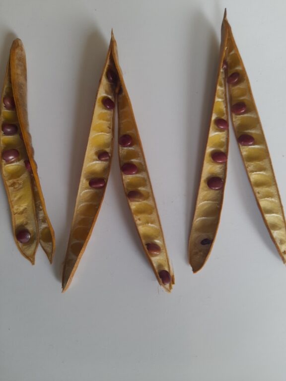La Ginestra più diffusa in Calabria è la specie Spartium junceum che appartiene alla famiglia delle leguminose, è un arbusto il cui fusto di consistenza legnosa molto ramificato e contorto può raggiungere un’altezza di oltre 3 metri. Le ramificazioni nel primo anno di formazione, comunemente chiamate vermene, sono erette a sezione trasversale di forma circolare, spessore a livello mediano di 3-6 mm circa e una lunghezza molto variabile che può superare anche un metro. Le vermene, di colorazione verde intenso per la presenza di clorofilla, sono comprimibili in quanto contengono all’interno un tessuto parenchimatico, di colore bianco, di consistenza spugnosa e facilmente asportabile. Queste ramificazioni dette anche giunchiforme sono ricche di cellulosa e si utilizzano per la estrazione delle fibre. Le foglie sono di tipo semplice, rade e cadono precocemente già in estate. La fotosintesi, oltre che nelle pochissime e piccolissime foglie, avviene principalmente nelle vermene. I fiori, inconfondibili, sono di colore giallo e molto profumati. La fioritura sulla pianta è scalare. I frutti sono dei baccelli di larghezza da 4 a 8 mm circa e lunghezza da 50 a 80-100 mm circa che, all’inizio presentano una colorazione verde e a maturazione diventano di colore marrone. Ogni baccello può contenere da 5-6 fino a 10-15 semi. Il peso dei mille semi è pari a circa 15 grammi. L’epoca di fioritura e la conseguente formazione dei baccelli varia a seconda dell’altitudine, inizia già da fine aprile nelle zone più basse ma può avvenire anche a maggio/giugno man mano che aumenta l’altitudine. Durante l’estate, i baccelli maturi, molto disidratati, nelle ore più calde si aprono istantaneamente, determinando la spinta dei semi a notevole distanza dalla pianta madre. I semi che raggiugono la superficie del terreno, appena si verificano le condizioni di umidità e temperatura adatte, germinano dando origine a nuove piantine di ginestra.