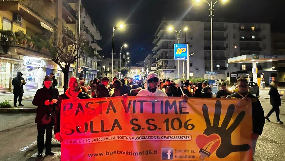 Toccanti le parole dei genitori ad iniziare papà Cosimo: «L’immagine che mi gira sempre in testa è vedere mio figlio uscire, come quella sera, col sorriso sulle labbra e non tornare più. Quello che so purtroppo è che mio figlio è passato a miglior vita per colpa delle mancate manutenzioni che abbiamo sulle nostre strade. L’unica certezza che mi rimane è che se ci fosse stato il guardrail mio figlio sarebbe sicuramente vivo». Alla vigilia del primo anniversario del tragico incidente che ha coinvolto il figlio diciannovenne, mamma Katia invece ha aggiunto: «Abbiamo pensato di ideare questa fiaccolata per Luca e per tutte le vittime della 106 e nonostante vento e pioggia siamo riusciti a portarla a termine perché era doveroso da parte nostra». Idea condivisa da tutti i partecipanti alla fiaccolata è che per promuovere la “Vita” è necessario che istituzioni, associazioni e la comunità calabrese cerchino delle strategie e soluzioni decisive al fine di iniziare ad arginare la piaga della 106 che nei decenni ha fatto centinaia di vittime provocando dolori sconfinati. Ben vengano e siano di esempio, specie dalle famiglie delle vittime, le fiaccolate o altre iniziative a patto che servano per sensibilizzare i politici e smuovere progetti e fondi necessari per ammodernare e mettere in sicurezza l’intera arteria stradale jonica. Nella serata del 10 gennaio, invece, parenti e amici si sono ritrovati nuovamente per una Messa in suffragio di Luca sempre presso la parrocchia “Maria Santissima Immacolata”.