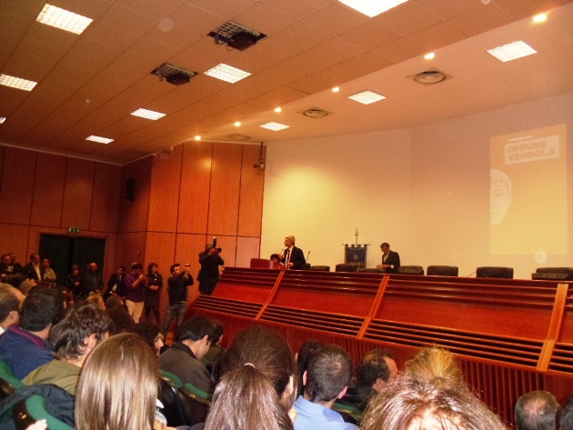 E’ stato un Nichi Vendola a tutto campo quello che ieri sera (martedì), nell’aula magna dell’Università della Calabria di Rende (Cs), ha intrattenuto oltre mille persone tra studenti professori e simpatizzanti. Una tappa d’avvicinamento alle primarie del centrosinistra che lo vedono contrapposto a Bersani e Matteo Renzi che si è aperta col saluto da parte di una rappresentante degli studenti calabresi e del preside della facoltà di lettere e filosofia, il professor Perrelli. Il discorso del leader di Sinistra Ecologia e Libertà ha toccato diversi punti, problemi irrisolti di un’Italia che soffre, in primis, di una vera crisi di valori “figlia del berlusconismo”. “La fine del berlusconismo- ha sottolineato- non coincide con l’uscita dal proscenio di Silvio Berlusconi, il berlusconismo non è stata una categoria della politica bensì l’autobiografia di una Nazione e ha riguardato la destra, la sinistra, l’opinione pubblica, il mercato del lavoro e gli apparati di formazione”. “Mi sono addormentato-continua Vendola- in un mondo nel quale il valore sociale era attribuito agli educatori, mi sono svegliato in un mondo alla cui cattedra vi erano Fabrizio Corona e Lele Mora”.
