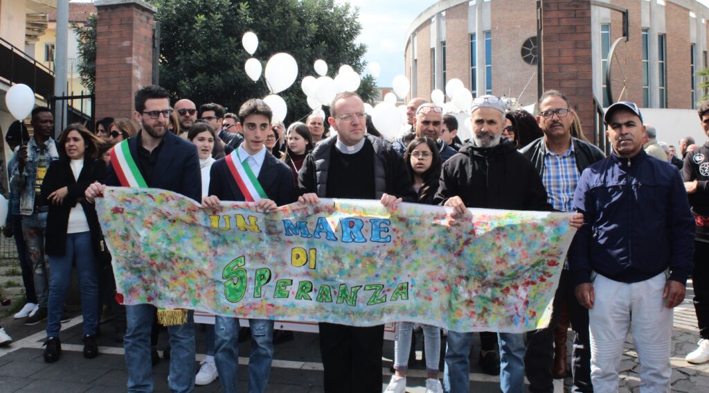 In corteo il sindaco Flavio Stasi, il baby-sindaco Alessandro Bianco, il presidente del Consiglio comunale Marinella Grillo, ma anche diversi assessori e consiglieri comunali. La marcia è terminata sulla spiaggia di Schiavonea dove, dopo gli interventi delle autorità e di padre Francesco Ansalone, è stata lanciata una corona di fiori in mare da parte dei due consiglieri comunali: Biagio Frasca e Liliana Zangaro. Significativo l’intervento del sindaco Stasi che ha dichiarato: «Oggi abbiamo vissuto una manifestazione di umanità, ma anche di riflessione. I calabresi sono un popolo di migranti. Tanti calabresi sono morti in mare, sono morti nelle miniere di altri paesi e nei cantieri lontani da casa. Nessuno di noi lo dimenticherà mai. C’è chi chiede 10 mila euro per portare persone su un barcone col rischio di naufragare e lasciarle in mare. Chi potrebbe mai essere tenero con gli scafisti? Ma la nostra cultura e la nostra storia, ci impongono di riflettere ed interrogarci sul fatto che ci sono persone, uomini e donne, genitori, che sono disposti a pagare 10 mila, 15 mila, 20 mila euro e rischiare di morire pur di mettere piede sull’altra sponda del mare. Centinaia di migliaia di persone. Ringrazio, in modo particolare, quanti hanno preso parte alla marcia di oggi, tra cui le diverse associazioni del territorio, le scuole, i cittadini, gli studenti, il consiglio comunale dei ragazzi, per aver marciato insieme a noi per dare un segnale di umanità e speranza».