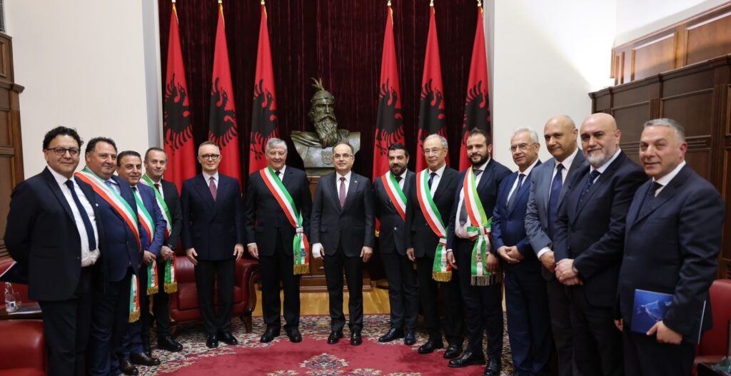 Un momento storico per l’Arberia di Calabria, ricevuta ufficialmente per la prima volta in delegazione nel Palazzo delle Brigate dal Presidente della Repubblica, Bajram Begaj, in un incontro tenutosi nella capitale albanese alla presenza del consigliere legale del presidente, Klement Zguri, e di S.E. Fabrizio Bucci, Ambasciatore italiano in Albania. La Fondazione “Istituto Regionale Comunità Arbëreshe di Calabria”, rappresentata a Tirana dal Commissario Ernesto Madeo e dai sindaci dei comuni di Falconara Albanese (Francesco Candreva), Firmo (Giuseppe Bosco), Lungro (Carmine Ferraro), San Cosmo Albanese (Damiano Baffa), San Demetrio Corone (Giuseppe Sangermano, vicesindaco), San Giorgio Albanese (Gianni Gabriele) e Santa Sofia d’Epiro (Daniele Atanasio Sisca), avvia il percorso istituzionale di reciprocità e progresso culturale e socio-economico tra il popolo albanese e le comunità arbëreshe di Calabria, processo fortemente sostenuto dal Presidente della Regione Calabria, Roberto Occhiuto.