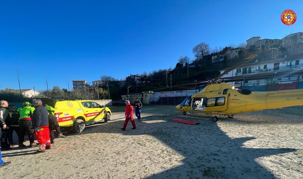 Sabato pomeriggio, il Soccorso Alpino e Speleologico Calabria (SASC) è intervenuto, per un ciclista 51enne di Rende (Cs) che, dopo una rovinosa caduta in mountain bike, si è procurato diversi traumi e contusioni. Il biker si trovava a percorrere un sentiero nel comune di Cerzeto (Cs), nell’Appennino Paolano. Sul posto è giunta prontamente una squadra di tecnici della Stazione Alpina Sila Camigliatello affiancata, successivamente, da tecnici della Stazione Alpina Pollino del SASC. Dopo averlo imbarellato, l’uomo è stato trasportato verso il campo sportivo di San Marco Argentano (Cs) e consegnato ai medici dell’elisoccorso del 118 di Cosenza (nella foto). Il 51enne è stato elitrasportato all’ospedale dell’Annunziata di Cosenza. Presenti sul posto anche i militari del Soccorso Alpino della Guardia di Finanza.
