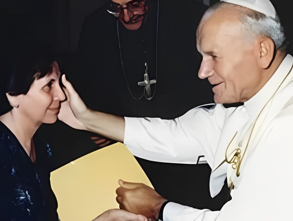 Un cammino riconosciuto in via definitiva il 18 gennaio 2001 dall’allora Arcivescovo di Catanzaro-Squillace, S.E. Mons. Antonio Cantisani, che nel decreto vescovile. Significativa fu anche l’udienza privata del Movimento Apostolico con il Santo Padre Giovanni Paolo II, avvenuta a Castel Gandolfo il 16 agosto del 1987 (nella foto). Il 25 marzo, durante il rito funebre nella chiesa parrocchiale del quartiere Siano in Catanzaro, tanti hanno voluto esprimere con la preghiera e con il canto gioioso un saluto alla signora Maria Marino. Nell’omelia, don Gesualdo De Luca ha ricordato come la signora Maria Marino ha vissuto il suo “sì” al Signore in modo “pronto, immediato e totale”. “Da fedele laica e mamma di famiglia, la sua forza è stata nell’amore per Gesù, nella Vergine Maria, cibandosi ogni giorno della Santa Eucaristia, il suo tutto – racconta chi le è stato vicino -. Ha amato e servito la Chiesa con umiltà e devozione, camminando sempre sotto la guida dei pastori”.