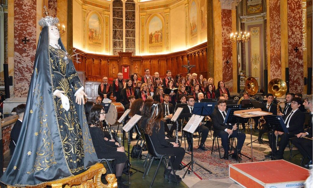 Momento religioso ben coniugato con la rassegna musicale a tema espressa dalla combinazione del coro polifonico “Semina La Pace” della parrocchia coriglianese “San Giovanni XXIII”, diretto dalla maestra Francesca Langella, e dall’associazione bandistica “A. De Bartolo” Città di Corigliano-Rossano guidato dal maestro Domenico Vasto. All’incoronazione della Madonna il duo coro-banda ha intonato per l’occasione il “Magnificat”. Evento sotto la direzione artistica di Antonio Maria D’Amico e coordinatori della serata Andrea Costantino Levote e Francesca Romeo. Le meditazioni dei “Sette dolori di Maria” sono state esposte dal noto attore rossanese Alessandro Cosentini, interprete teatrale e televisivo, intervallate da pezzi della banda e dai brani del coro “O Fieri Flagelli”, “Stabat Mater”, “Nostra Gloria è la Croce di Cristo” e “Ti Saluto O Croce Santa”. Plausi e gradimenti per tutti i membri dell’orchestra e dei coristi e un particolare riferimento per la prestazione della soprano Maria Rosaria Romio distintasi sopra le righe soprattutto durante il “Stabat Mater”.