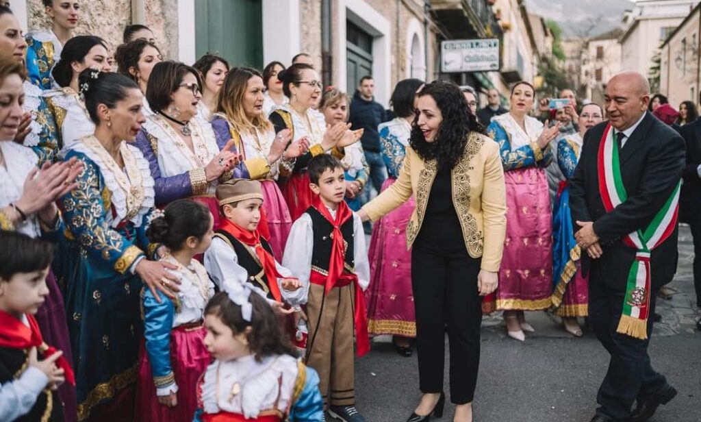 «L’identità culturale e linguistica arbëreshe – ha dichiarato la presidente del Kosovo Vjosa Osmani – è una parte preziosa dell’identità e della cultura albanese. Pertanto la sua conservazione è vitale per tutta la nostra nazione. La festa delle Vallje oggi, nei comuni arbëreshë di Civita e di Frascineto, è una testimonianza della conservazione di queste tradizioni che si sono tramandate nei secoli». La presidente ha, poi, proseguito la sua visita tra i gruppi partecipanti che le hanno reso onore con canti e danze.