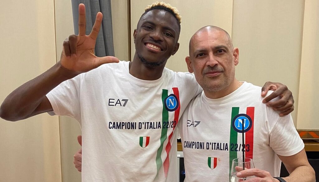 di Vincenzo La Camera – C’è anche un po’ di Saracena nel terzo scudetto del Napoli che si sta festeggiando ormai da tempo ma ancor di più in queste ore in virtù della certezza matematica giunta ieri sera dopo il pareggio di Udine. Infatti nello staff della Società Sportiva Calcistica Napoli, come vice direttore sportivo figura Giuseppe Pompilio, saracenaro doc. Pompilio (nella foto con l’attuale capocannoniere della Serie A, Victor Osimhen) è il braccio destro del ds Cristiano Giuntoli che assieme al presidente De Laurentis e mister Spalletti hanno allestito la formidabile rosa del Napoli, portando in azzurro il talento Kvaratskhelia, Osimhen, il sud coreano Kim, il gioiellino della nazionale Raspadori, solo per fare qualche nome. Anche il sindaco di Saracena, Renzo Russo, ha voluto congratularsi sui social con il suo concittadino Giuseppe Pompilio, a nome di tutta la comunità. «E’ uno dei principali artefici di questo meraviglioso successo che inorgoglisce il Sud, Saracena e la sua famiglia che lo ha sempre sostenuto e spronato verso la sua passione che oggi lo porta a raccogliere i risultati di anni di impegno, sacrificio, abnegazione».