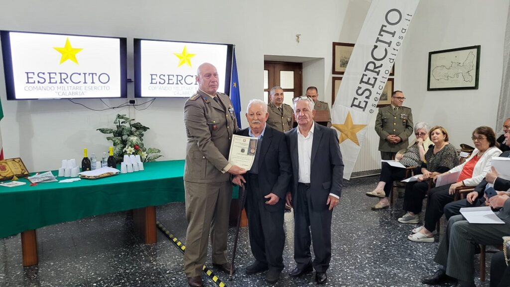 di Vincenzo La Camera – Si è svolta presso il Comando Militare Esercito “Calabria” di Catanzaro, la cerimonia di consegna delle Croci Commemorative e dei Diplomi d’Onore, relativi al periodo bellico 1940-45. A ritirare l’onorificenza i figli dei combattenti (foto di gruppo in basso). A rendere la cerimonia ancor più carica di emozione, la presenza del soldato classe 1918 Francesco Giardino che, con i suoi centocinque anni, ha ritirato di persona l’onorificenza (nella foto copertina).
