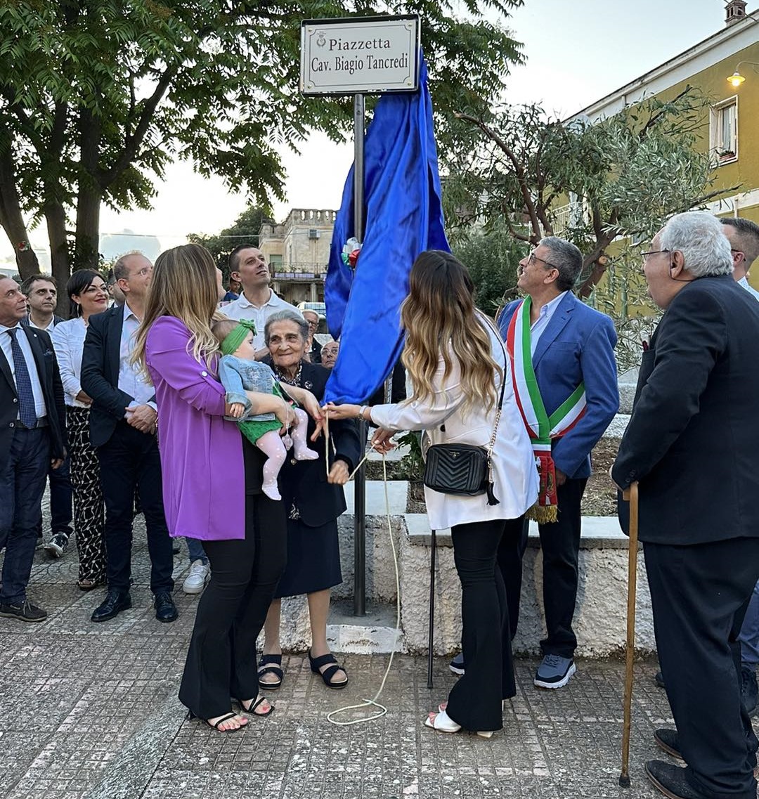 Intitolata nel fine settimana al cavaliere Biagio Tancredi la piazzetta confinante con via Fiume a Lauropoli di Cassano allo Ionio. Alla cerimonia di intitolazione erano presenti il figlio Domenico Tancredi, la figlia Marietta, le nipoti e numerosi cittadini giunti per ricordare la memoria di Biagio Tancredi, imprenditore agricolo e sindacalista, punto di riferimento per l’intera comunità. Ognuno degli intervenuti ha voluto ricordare i bei momenti andati e i tanti aneddoti che hanno visto protagonista il compianto Cavaliere Tancredi scomparso nel marzo del 1997.