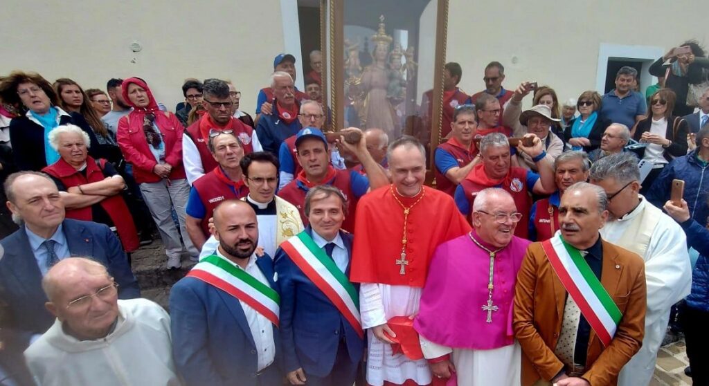 di Vincenzo La Camera – Il Comune di Amendolara ha partecipato ufficialmente ai solenni festeggiamenti in onore della Madonna del Pollino culminati sabato scorso primo luglio, sull’omonimo monte, nel territorio di San Severino Lucano (Pz), sede del santuario mariano. Oltre a tanti amendolaresi che già da giovedì e venerdì avevano raggiunto il santuario come da tradizione, ha partecipato alla Santa Messa in veste istituzionale anche il presidente del Consiglio Comunale di Amendolara, Daniele Santagata. La funzione religiosa, al cospetto della Santa Vergine del Pollino, è stata presieduta dal cardinale Mauro Gambetti, vicario generale del Papa per la Città del Vaticano, con la presenza del vescovo della diocesi di Tursi-Lagonegro, don Vincenzo Orofino.