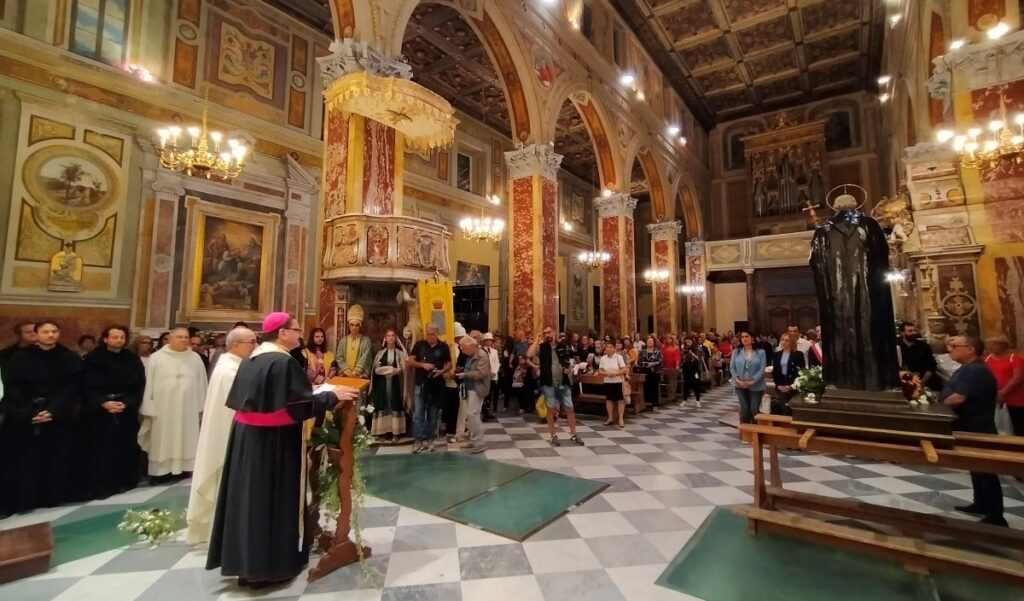 di Antonio Le Fosse – Tanti cittadini e fedeli, martedì 26 settembre 2023, hanno partecipato ai festeggiamenti in onore di San Nilo Abate (Santo Patrono di Rossano). Alle ore 18:00, nella Chiesa di San Nilo, è stata celebrata la Santa Messa presieduta da S.E. Mons. Maurizio Aloise (Arcivescovo della Diocesi di Rossano-Cariati) alla presenza del sindaco Flavio Stasi, del Presidente del Consiglio comunale Marinella Grillo, dell’Assessore alla Cultura Alessia Alboresi, dell’On. Elisa Scutellà (Parlamentare del M5S), dell’Assessore provinciale Adele Olivo, del Comandante della Stazione Carabinieri del centro storico di Rossano, il luogotenente Mario Levato, ma anche alcuni funzionari ed agenti della Polizia di Stato del Commissariato di Corigliano-Rossano, i Vigili Urbani in grande uniforma e con i due gonfaloni si Co-Ro. La Santa Messa è stata animata dai canti religiosi eseguiti, magistralmente, dal Coro della Cattedrale, oltre della Parrocchia di San Nilo e di San Bartolomeo, diretto dal Maestro Luigi Pignataro.
