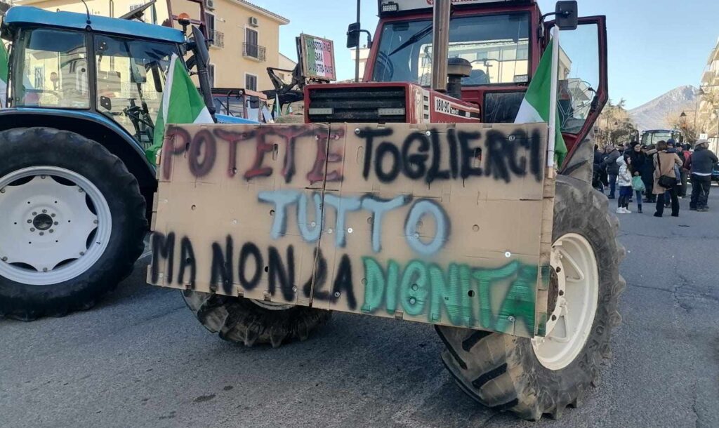 di Federica Grisolia – Anche a Castrovillari monta la protesta degli agricoltori, così come in varie località d’Italia. Tanti, infatti, i presidi e le manifestazioni in programma oggi (giovedì 1° febbraio) in diverse città. Una protesta che è andata sempre più allargandosi (dalla Francia, Germania, Romania, Belgio, Polonia e ora anche in Italia), contro le politiche agricole dell’Europa e le scelte dei governi, le tasse, il rincaro delle materie prime, il gasolio, i costi energetici alle stelle, la svendita dei terreni. A lanciare l’allarme, a bordo dei loro trattori – oltre un centinaio – gli agricoltori, che hanno percorso, in una lunga marcia da Spezzano Albanese fino a raggiungere le strade principali di Castrovillari e il centro della città, sotto la sede della Coldiretti. “La nostra fine sarà la vostra fame”. “L’UE ha ucciso l’agricoltore”. “No agricoltori, no cibo, no futuro”. “L’agricoltura è la vita di tutti”. Questi alcuni dei cartelli esposti durante il corteo, che denunciano costi di produzione ormai ingestibili e una condizione divenuta ormai insostenibile e senza futuro.