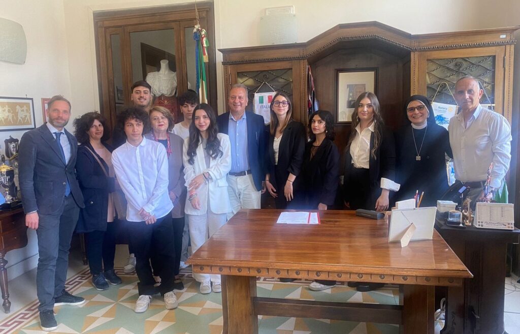 Nella stanza del sindaco, sabato 4 maggio, la firma del progetto tra il dirigente scolastico, Vincenzo Tedesco e il sindaco, Mimmo Lo Polito, alla presenza di una rappresentanza degli studenti della IV B Sistemi Informativi Aziendali dell’Istituto, accompagnati dalle docenti Rosalina Barletta, suor Fabrizia Molinaro e Maria Giulia Mulè che faranno da supporto ai ragazzi nel portare avanti l’iniziativa. Gli studenti, che a turno terranno aperto ed attivo lo sportello un giorno alla settimana, hanno voluto denominare lo Sportello “Il Giusto supporto” proprio nello spirito e nell’ottica dell’inclusione.