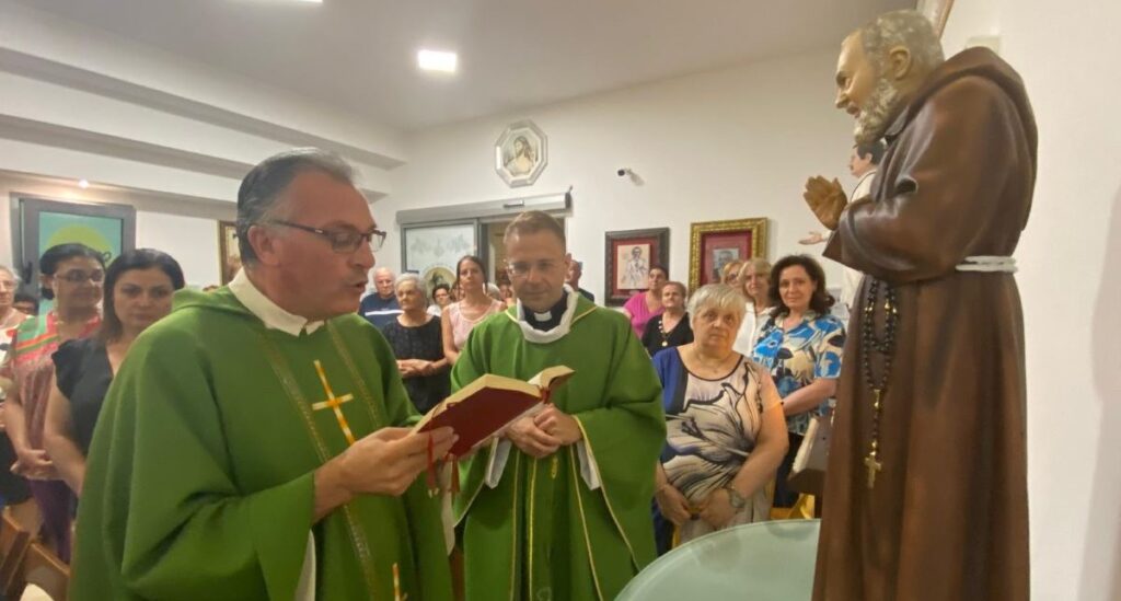 di Cristian Fiorentino – Vissuto un “Momento di Grazia” nella serata di domenica scorsa 11 agosto presso la cappella intitolata a “San Giuseppe Moscati” dell’ospedale “Guido Compagna” a Corigliano. Sotto l’impulso del nuovo cappellano Don Agostino Stasi, infatti, e grazie ad un’offerta devozionale fatta da un medico dello stesso ospedale, si è voluto solennizzare il momento attraverso la benedizione di una nuova statua di San Pio. Cerimonia vissuta alla presenza di Don Vincenzo Ferraro, vice-parroco presso la comunità ecclesiale del centro storico di S. Antonio e S. Maria Maggiore e responsabile dei gruppi di “Padre Pio”, con cui si avvierà un percorso di promozione e sensibilizzazione sulla spiritualità del Santo di Pietralcina e San Giovanni Rotondo.