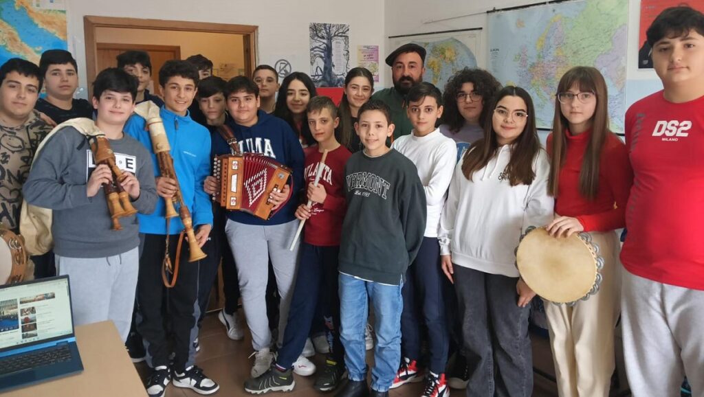 di Pino La Rocca – Al fine di salvaguardare e tramandare alle nuove generazioni la musica e la cultura popolare il maestro Antonio Arvia, di Alessandria del Carretto, polistrumentista del gruppo musicale calabro-lucano “Totarella”, d’intesa con i docenti del posto e autorizzato dal dirigente scolastico dell’Istituto Comprensivo “Corrado Alvaro” Giuseppe Solazzo, ha intrattenuto gli alunni della Scuola Secondaria di Primo Grado di Albidona con una lezione di musica popolare. Un’esperienza, quella proposta dal maestro Arvia, molto gradita e apprezzata dagli alunni di Albidona anche perché, come è noto, la piccola comunità albidonese è molto legata agli strumenti e alla musica popolare tanto che già da piccoli i ragazzi vengono avviati al suono degli strumenti tipici di questa tradizione.