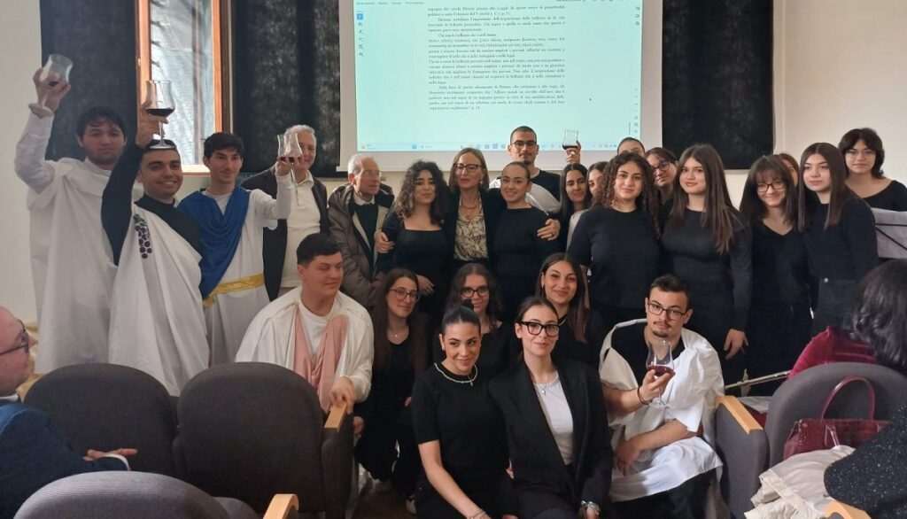 In apertura, il presidente dell’AICC nazionale, prof. Renzo Tosi, ha rivolto, tramite videomessaggio, un saluto ai partecipanti, sottolineando l’importanza dell’evento come occasione di riflessione e approfondimento sugli studi classici. La manifestazione, coordinata dalla prof.ssa Maria Lucilla Aprile, ha visto la partecipazione e la collaborazione degli studenti del Liceo Classico “G. Garibaldi”, che hanno letto e rappresentato passi significativi del “Simposio” di Platone, coinvolgendo il pubblico in una riflessione sul pensiero filosofico antico.