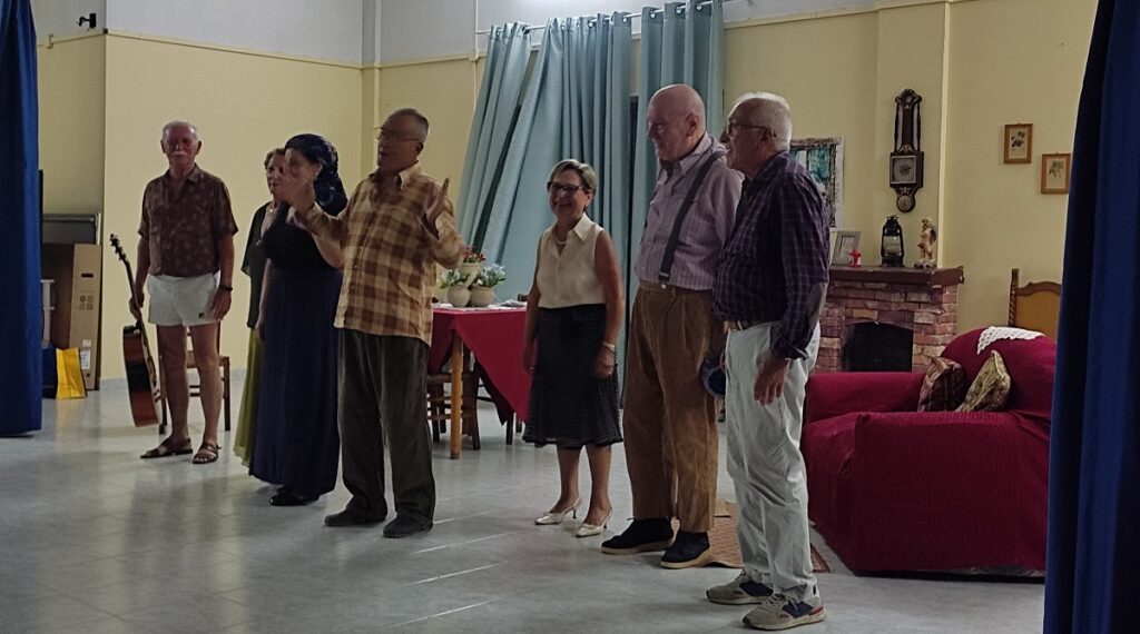 Davvero ammirevoli gli sforzi sostenuti dagli attori e dai Soci di “Età Serena” per mettere in scena uno spettacolo, risultato molto godibile, senza disporre di un teatro dotato di spazi scenici e di apparati scenografici che, ricorrendo all’arte dell’arrangiarsi, sono stati allestiti grazie all’armonia che esiste all’interno dell’Associazione, venerdì 27 giugno nei locali superiori della Chiesa “San Vincenzo Ferrer” concessi in comodato d’uso dal Comune.