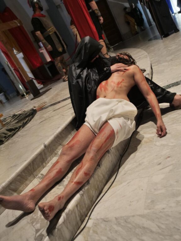 L’alacre cast diretto dal parroco Padre Davide Perdonò, ha permesso di ammirare la Passione di Cristo composta da tutti i fondamentali momenti racchiusi nell’intera “Settimana Santa”. All’interno della cornice le scene dell’Ultima Cena, la preghiera nell’orto degli ulivi e l’arresto nel Getsemani, il processo e la condanna, la Via Crucis, la Crocifissione e la Deposizione. Emerso il palese fattore di non voler sceneggiare ma di voler rivivere il segmento più spirituale, alto e cruciale della Cristianità. Il coro parrocchiale cha egregiamente associato la propria voce all’avvenimento. Gesù è stato impersonato da Leonardo Vita e per essere un esordio è stato più che positivo.
