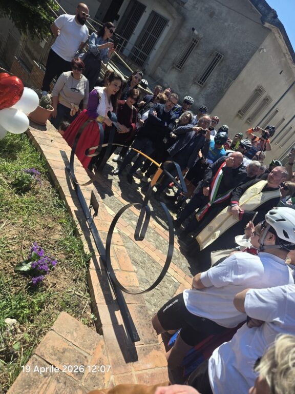 di Cristian Fiorentino – “Continua a pedalare sulla strada dell’infinito, oltre il tempo, oltre la fine”. Questa la dicitura impressa sula targhetta posta ai piedi della bici in ferro battuto voluta in memoria di Ettore Maldera. Nella mattinata di domenica 12 aprile, a Civita si è svolta l’inaugurazione del memoriale dell’indimenticato amico e ciclista Ettore Maldera, venuto a mancare prematuramente a novembre scorso. Al Belvedere del paese arbëreshë, alla presenza di istituzioni e sacerdote, si è ritrovata una nutrita schiera di residenti e compagni di avventure del compianto Ettore per una manifestazione originale e molto sentita da tutti i presenti. Civitese d’adozione, Ettore ha lasciato un segno nei suoi rapporti quotidiani e grazie alle relazioni strette per la passione del ciclismo.