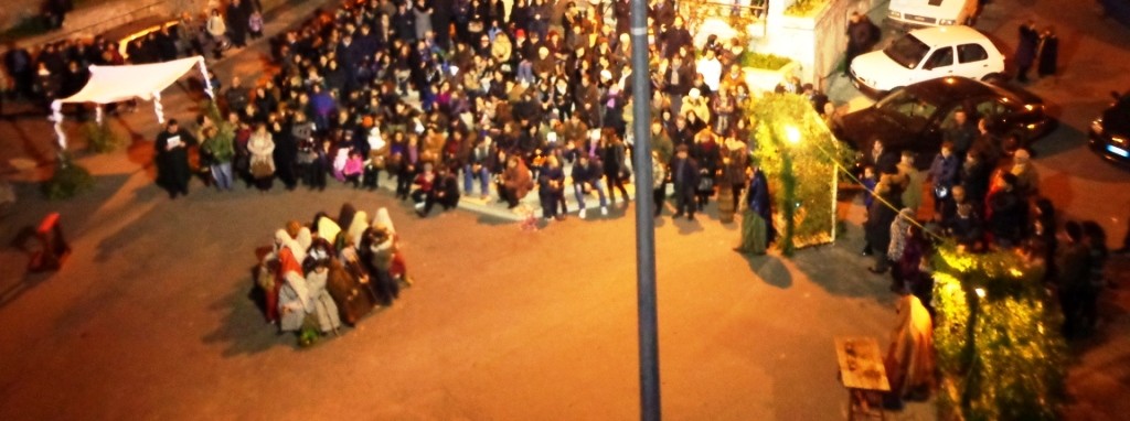 I ragazzi, dando prova di bravura e di ampia disponibilità ai suggerimenti e alle indicazioni della professoressa De Gaudio, hanno inscenato una Betlemme catapultata nelle nostre strade. Presenti, sul piazzale antistante il sagrato della chiesa affollato da un pubblico numeroso, i pastorelli con gli agnellini al seguito, le capanne che hanno ospitato il calzolaio, il cestaio, il falegname, con i rispettivi apprendisti, le lavandaie, le filatrici e infine le massaie che hanno preparato dal vivo e offerto ai presenti i “fritti” della tradizione locale.